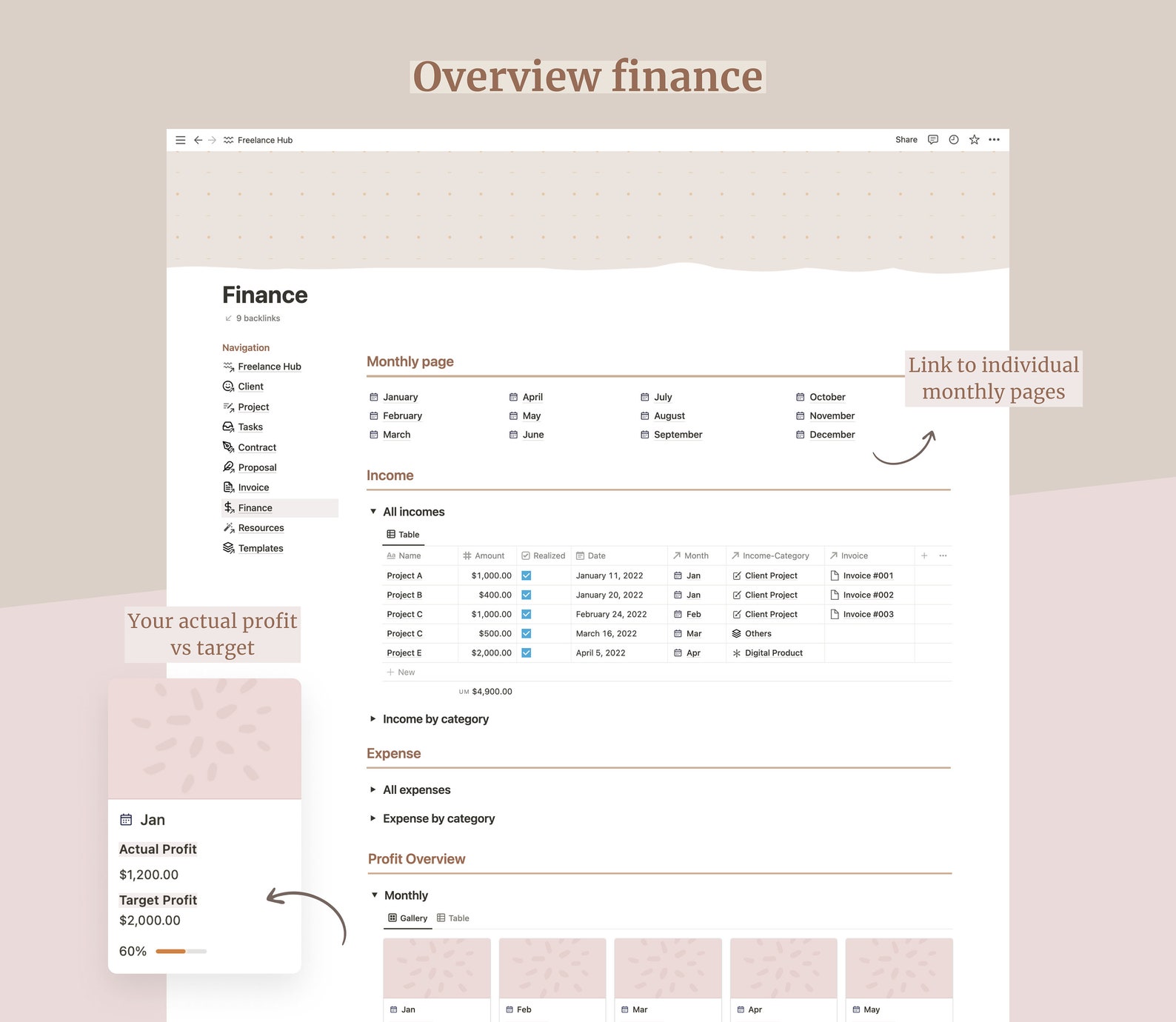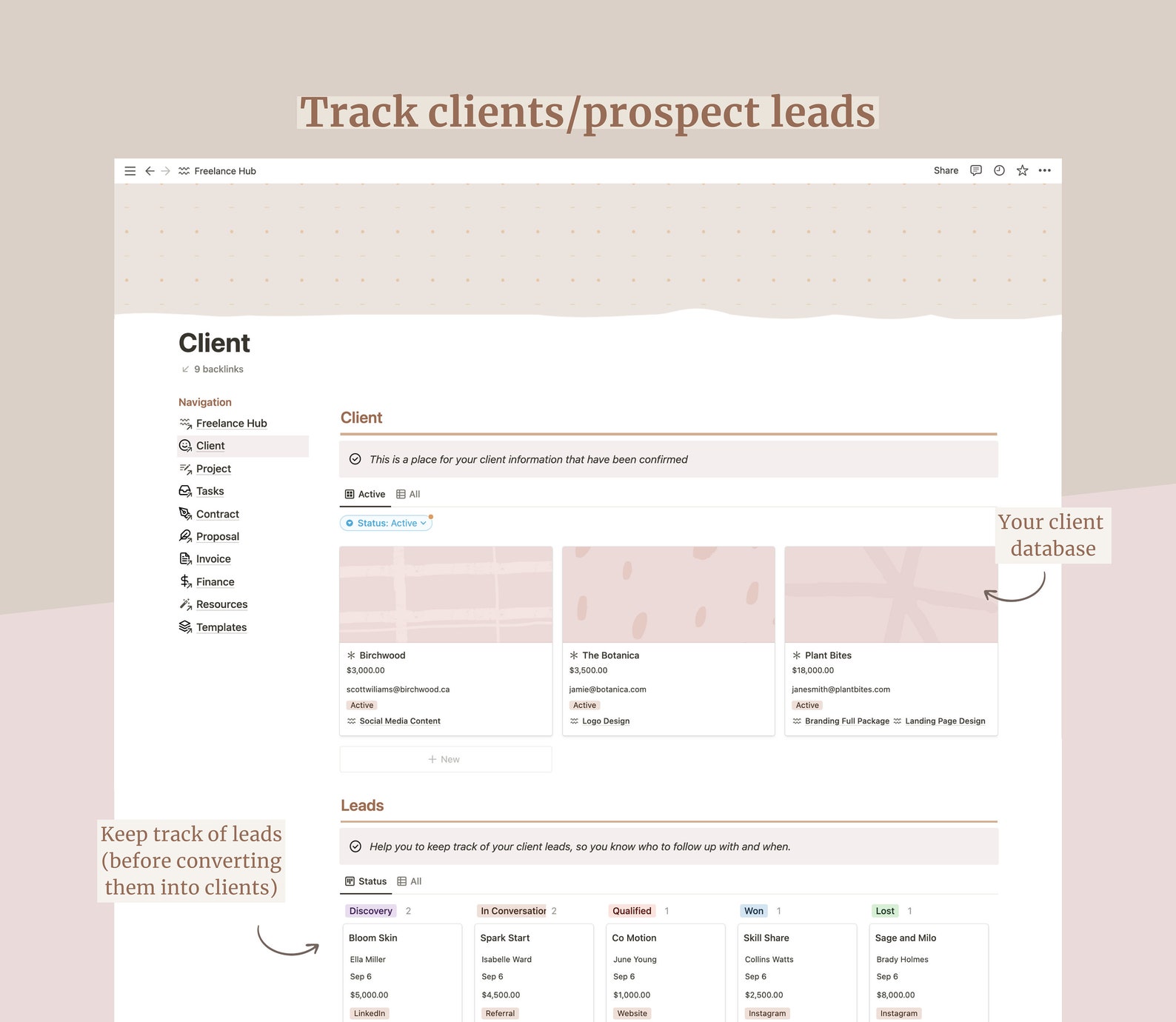 This Notion template helps freelancers manage and grow their business. Manage clients, projects, and proposals all in one place and stay on top of your finances. Keep everything for your business in one place with this template.